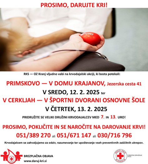 Primskovo 12.2. in Cerklje 13.2. 2025